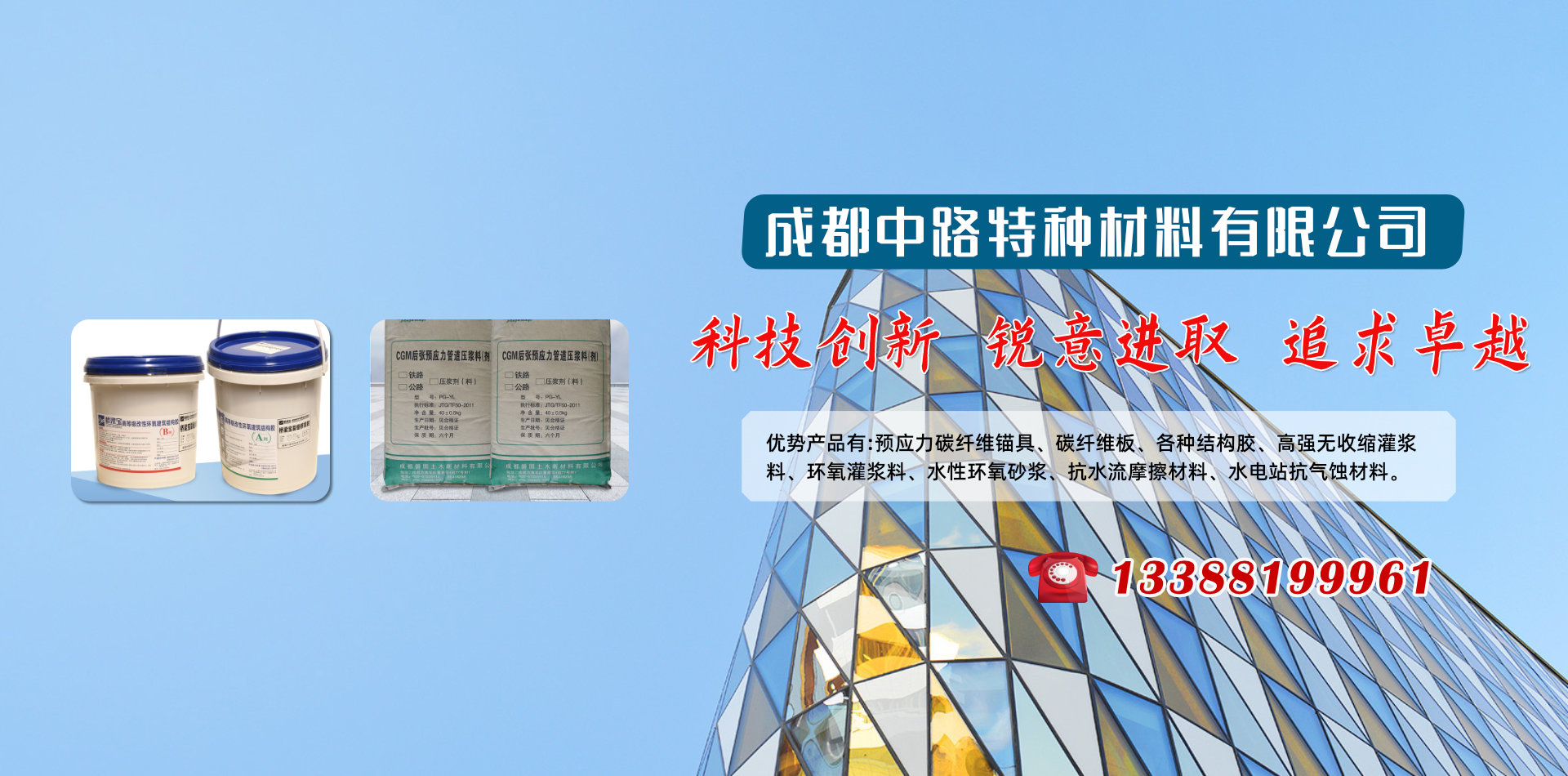 成都中路特種材料有限公司借助清華大學(xué)高分子材料學(xué)科、晨光化工研究院、西南交通大學(xué)、四川交通職業(yè)技術(shù)學(xué)院科研技術(shù)平臺成為一家集新材料研發(fā)、銷售、技術(shù)服務(wù)和施工于一體的專業(yè)服務(wù)公司,優(yōu)勢產(chǎn)品有:預(yù)應(yīng)力碳纖維錨具、碳纖維板、各種結(jié)構(gòu)膠、高強(qiáng)無收縮灌漿料、環(huán)氧灌漿料、水性環(huán)氧砂漿、抗水流摩擦材料、水電站抗氣蝕材料和研發(fā)各種特殊用途膠黏劑產(chǎn)品地處西南腹地成都,業(yè)務(wù)覆蓋四川各大中小城市、重慶、云南、昆明、新疆、西藏等區(qū)域。產(chǎn)品涵蓋各種加固施工材料、施工設(shè)備及施工配件,品牌有威士邦等aa進(jìn)口品牌,同時(shí)批發(fā)銷售國產(chǎn)高、中、低端品牌,為客戶提供全面參考。